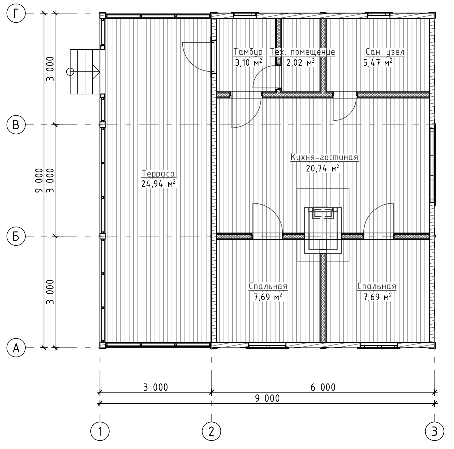 Дом 1эт. 9x9м